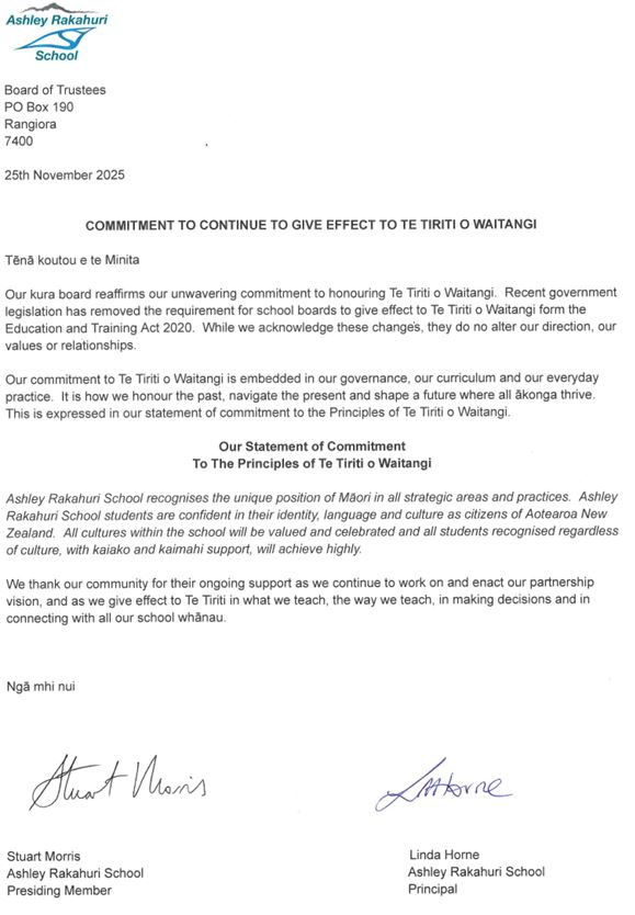 Welcome to Ashley Rakahuri School. We are a semi rural full primary school located 5kms north of Rangiora in the Waimakariri District and we cater for approximately 170 students. We are extremely proud of our school and invite you to come in and learn more about our values and how we do things here.